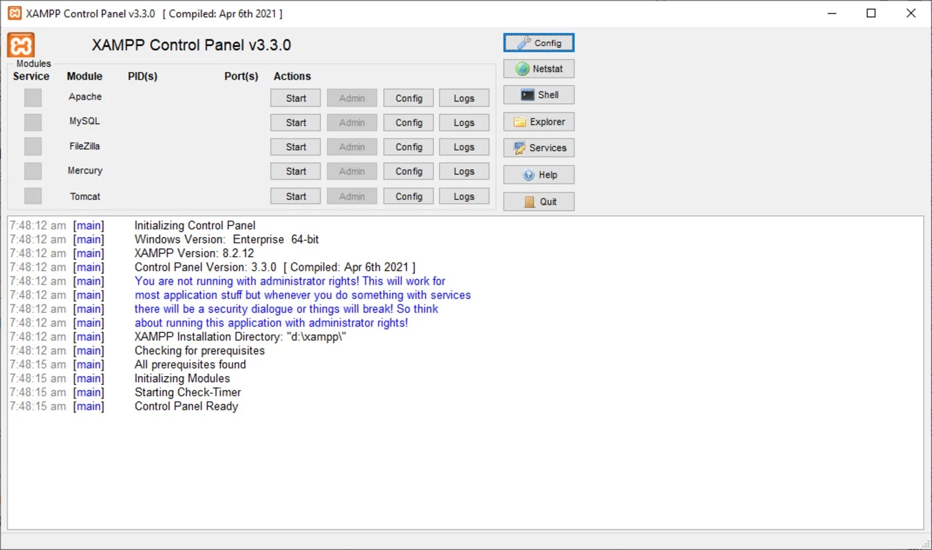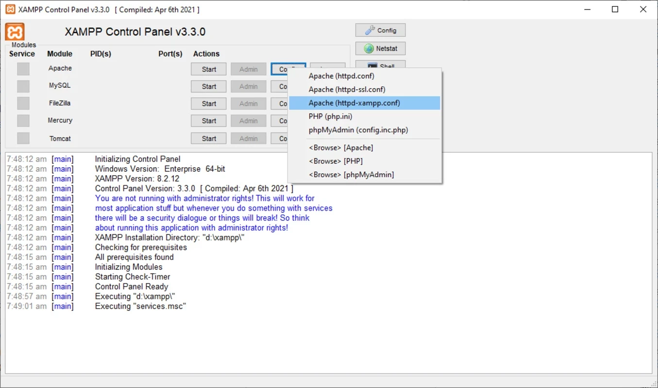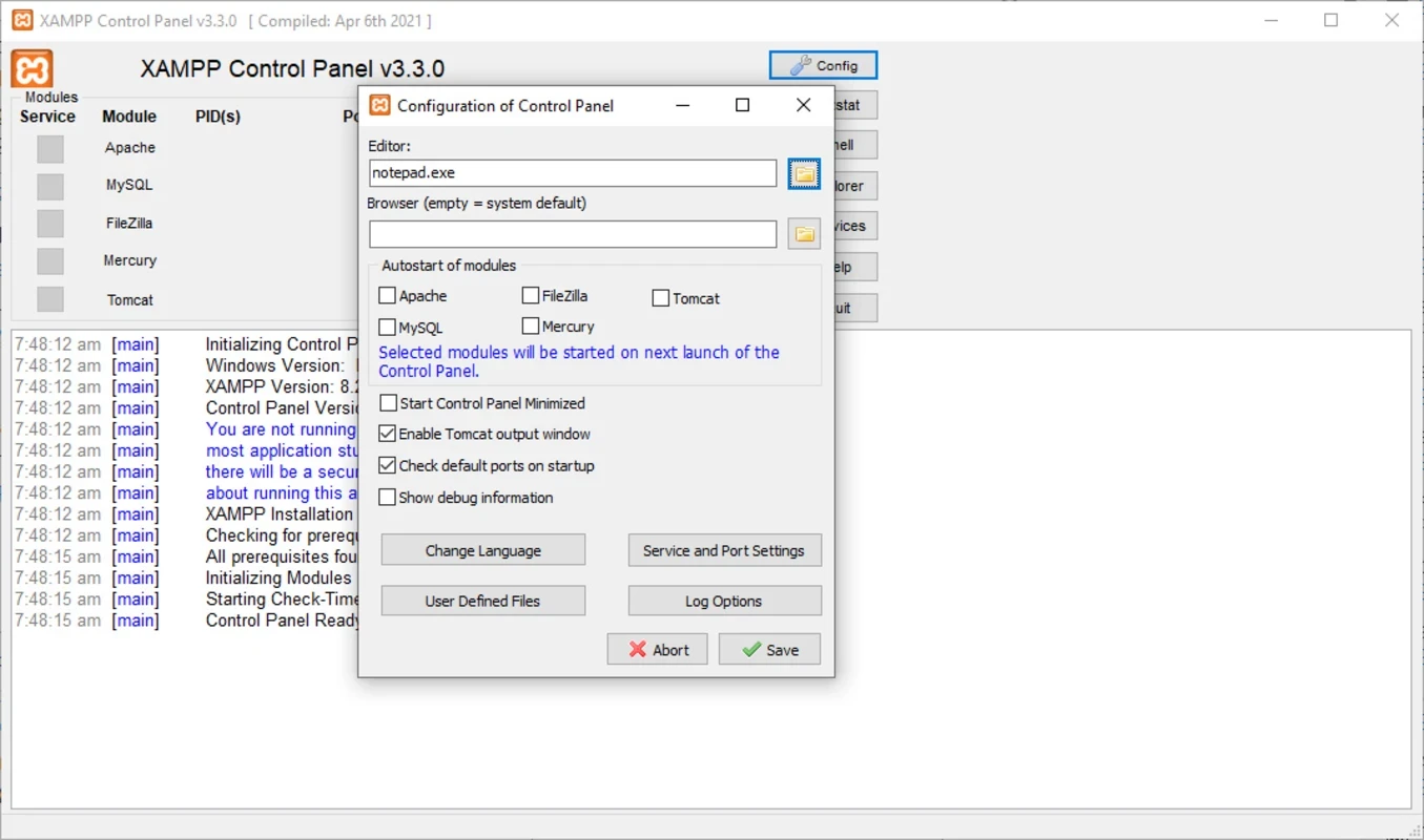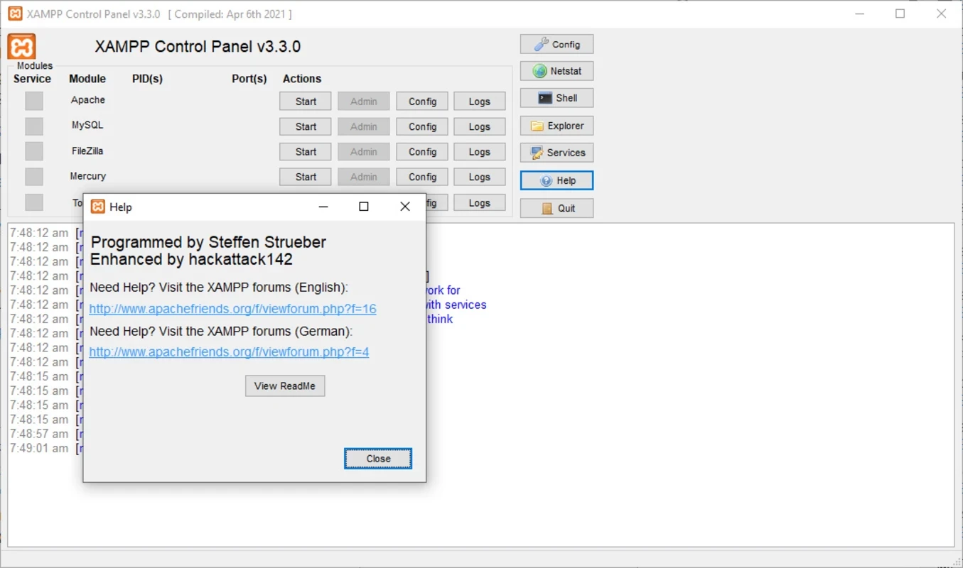 Das innovative Tool wurde von Apache-Partnern entwickelt und umfasst den Apache HTTP Server, die MariaDB-Datenbank und Interpreter für Skripte in verschiedenen Programmiersprachen wie PHP, Perl usw. Das benutzerfreundliche Kontrollfeld ermöglicht die schnelle und reibungslose Ausführung verschiedener Funktionen, wie z. B. das Starten oder Stoppen der Dienste, das Überprüfen von Logos und das Ändern grundlegender Einstellungen.